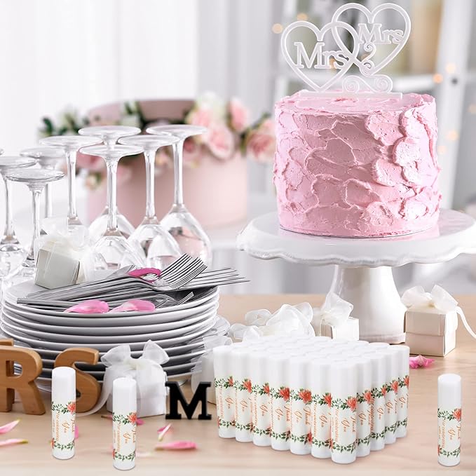 Dunzy 50 Pcs Thank You Gift Lip Balm Bulk Baby Shower Party Favors Bridal Shower Favor Lip Care with Assorted Fruit Flavors Thank You Lipstick for Guest Basket Gift Stuffer (Wedding)