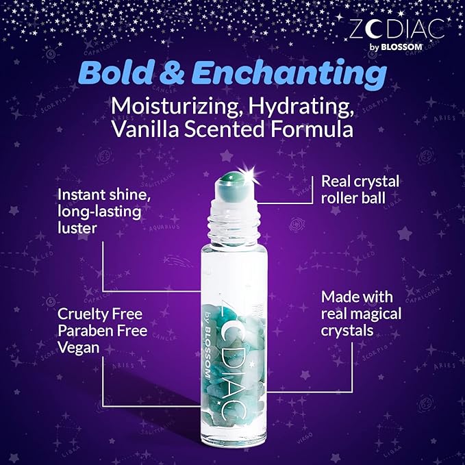 - ZODIAC CRYSTAL LIP GLOSS: Instant, long-lasting, high shine lipgloss with crystals to align with your cosmic sign. Available in all 12 zodiac signs (Aries, Taurus, Gemini, Cancer, Leo, Virgo, Libra, Scorpio, Sagittarius, Capricorn, Aquarius, and Pisces) and make the perfect gift for those astrologically inclined