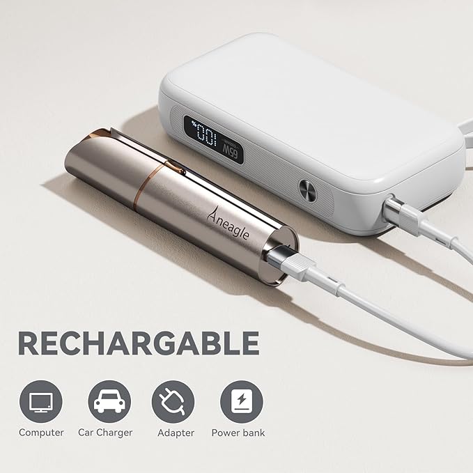- [USB Rechargeable] Our hair removal device with USB interface ends the trouble of frequent battery replacement, easily being charged via a power bank, car chargers or other USB charging devices.