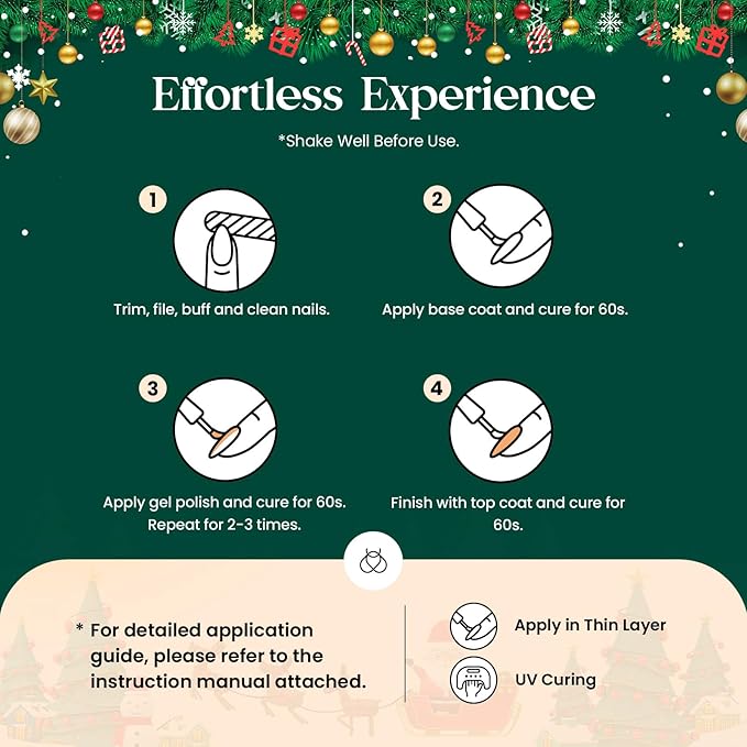 - Easy Application & Long-Lasting: Beetles gel nail polish lasts for 28+ days with perfect shine under proper application - With base gel top coat under the full application process and needs to be cured under LED/UV light for 60-120 seconds.