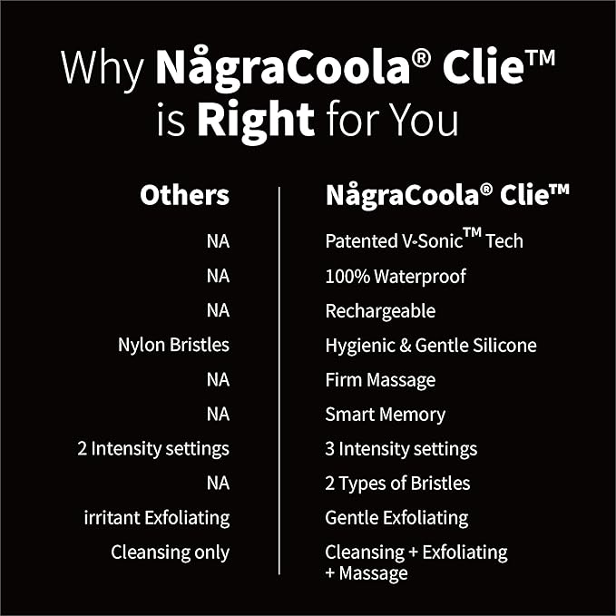 Silicone Face Scrubber, NågraCoola CLIE 2.0 Facial Cleansing Brush, Rechargeable, Waterproof Face Scrub Brush for Cleansing, Exfoliating, Massaging, Electric Facial Exfoliator for Women & Men - Black