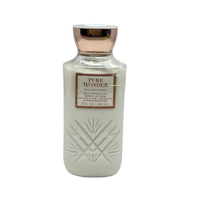 - Bath & Body Works Pure Wonder Body Lotion - Provides 24-hour nourishing moisture. This lightweight formula absorbs quickly into the skin and the skin feels noticeably softer after use!