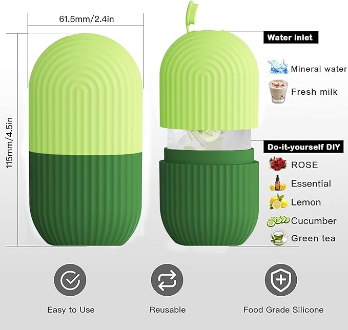 - β SAVE MONEY AND VERSATILE: Refillable for a fresh and clean cube each use. Freeze alternate cube recipesοΌsuch as lemonade for whitening, green tea for inflammation, cucumber water for reducing swelling, Mint leaves refreshing and coconut for improving skin Milk.