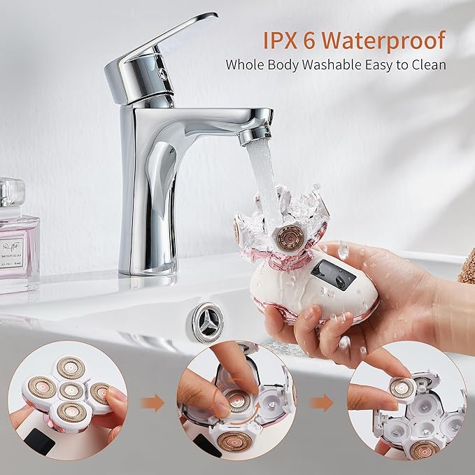 - 【Wet & Dry USE】 With IPX6 waterproof technology, this shaver for women supports both wet and dry use. Shaving with gel or dry is equally perfect. Easy to clean and whole body washable, you can pop the blades of the shaver for women directly, clean them, and wash them straightly with water. PLEASE NOTE do not sink womens electric razor in the water.