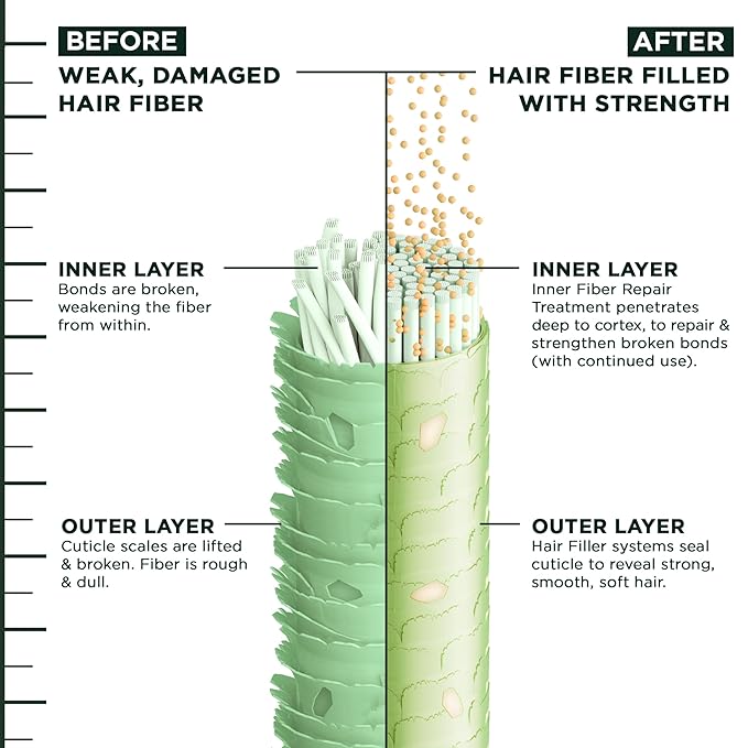 - Strengthening Serum for Hair: Our Sulfate Free Hair Filler + Vitamin Cg Serum for weak, damaged hair with Vitamin Cg + Citric Acid + Repair Care Complex, fills hair with strength 7 layers deep for inner fiber repair, outer visible transformation
