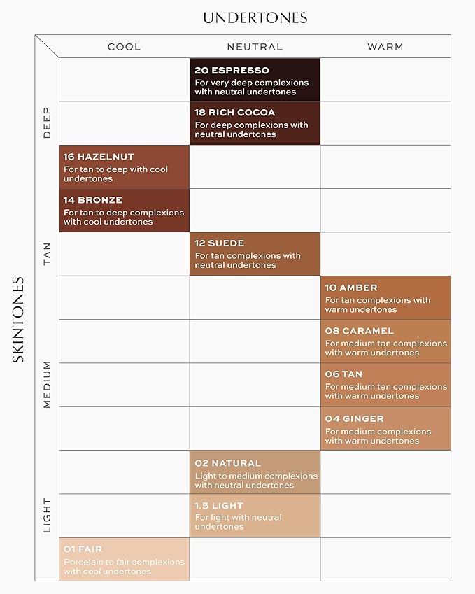 - SUEDE 12 SHADE: For tan complexions with neutral undertones.