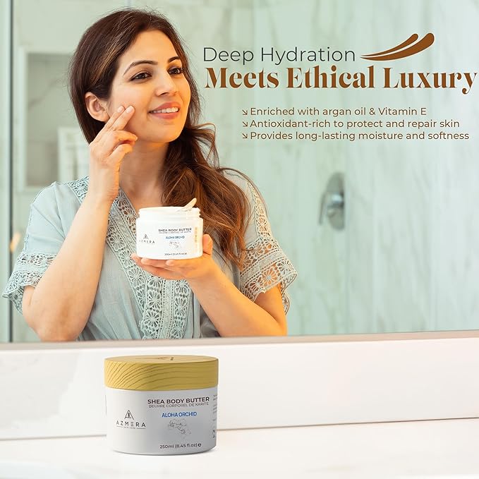 AZMERA Handcrafted Whipped Shea Body Butter – Luxurious Orchid Scented Moisturizer for Dry, Sensitive Skin with Argan Oil & Vitamin E – Vegan, Non-Greasy Skincare – 8.82 oz