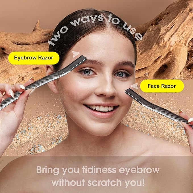- 【Good grip and Stable dermaplane razor for women face】our metal dermaplane razor use a straight edge,single-blade razor designed specifically for women's facial shaving.Sturdy and well balanced. which has an ergonomic handle that is important for getting a steady grip for the precise work that shaping an eyebrow requires. The textured surface also helps you get a better grip even though your hand is wet.