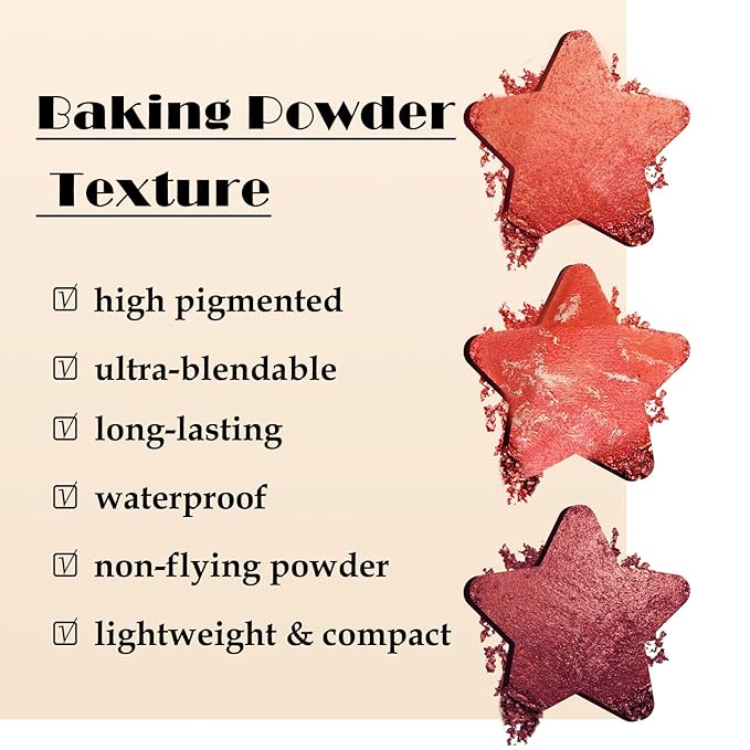 - Baked Highlighter & Blusher: Creamy fine and no fly powder, blendable blush baked powder with natural glow to brighten cheeks for glowing that shape, contour and highlight your brilliant three-dimensional facial features.