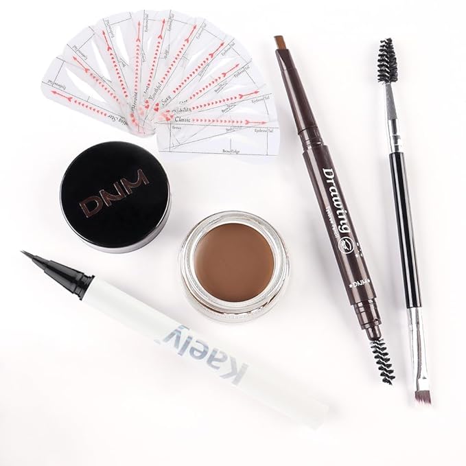 - ❤【Eyebrow Pencil Eyeliner Stencil Kit】Included Eyebrow Pencil, Liquid Eyeliner, Eyebrow Pomade, 10 Eyebrow Stencils and Dual-ended Eyebrow Brush.Instantly outlines, defines & fills in your brows no matter how much eyebrow hair you have,3 minute to create flawless, symmetrical brow!