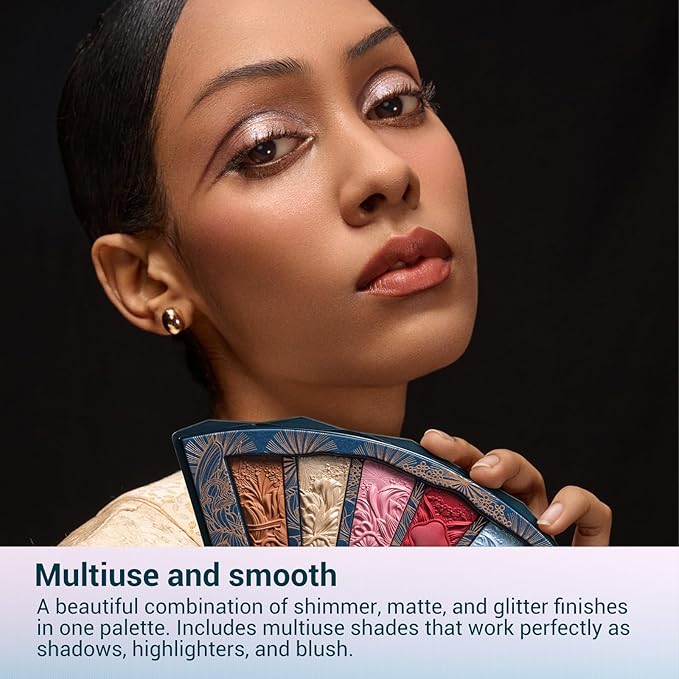 - Multiuse and smooth: A beautiful combination of shimmer, matte, and glitter finishes in one palette. Includes multiuse shades that work perfectly as shadows, highlighters, and blush. 100% talc and paraben free.