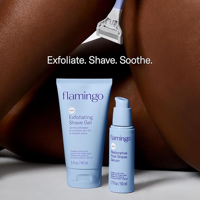 Flamingo Pubic Hair Razor for Women, Shaving Kit, 1 Pubic Razor Handle, 4 Five-Blade Refills, 1 Shower Holder, Starter Set, Full Kit
