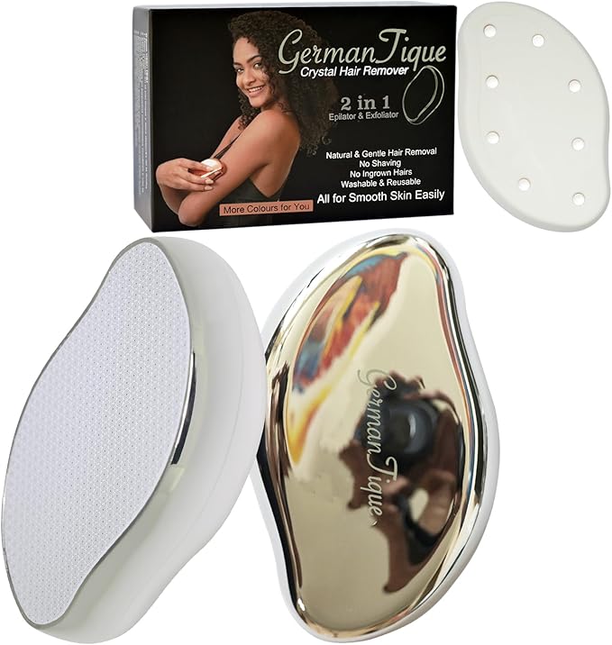 - AWAY FROM IRRITATION AND SLOW HAIR REGROWTH:Germantique crystal hair removal tool is a new generation of hair removal epilator. It can remove the hair without black dots easily and exfoliate dry skin cells with gentle glide which leaves skin soft and silky smooth .The hair can be evenly grabbed and neatly removed from the hair root when rubbing along the innovative circular patterns.No irritation,no fuss. It helps slow down and thinner hair regrowth after a regular use every two weeks