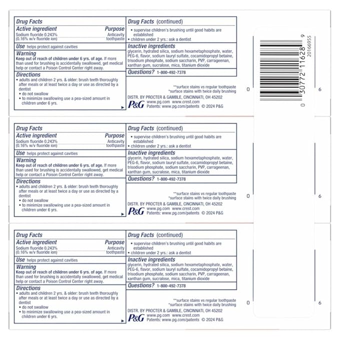 - FLUORIDE FORMULA: This Crest toothpaste contains a fluoride formula that helps to prevent cavities.