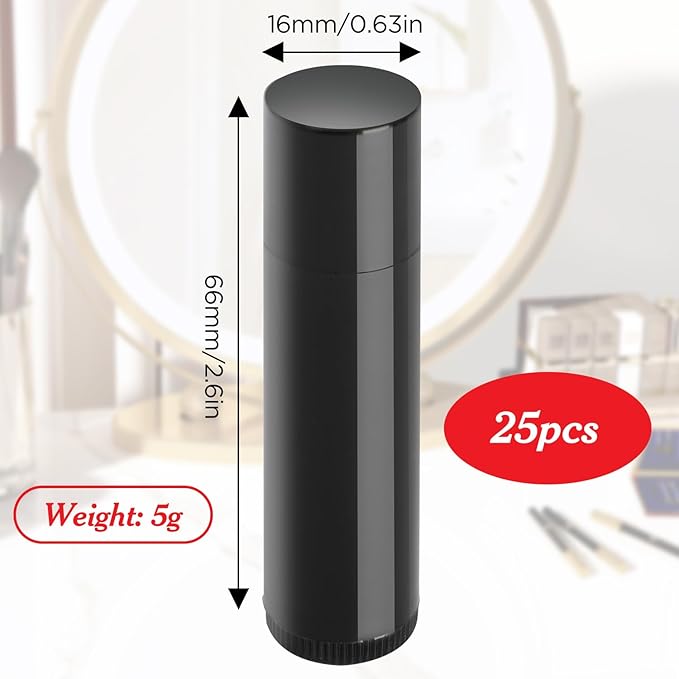 25PCS 3/16 Oz (5.5 ml) Twist up Lip Balm Tubes,Empty Lip balm containers, Echapstick tubes empty, Refillable Lip Balm Bottles, for DIY Homemade Lipsticks,Chapsticks,Homemade Solid Perfume, Black