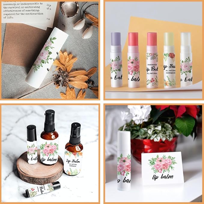 - Flower Theme--These lip balm labels stickers are designed with beautiful flowers and leaves patterns and "Lip Balm" "All Natural Handmade" words. Fine printing technology makes every pattern delicate and beautiful.