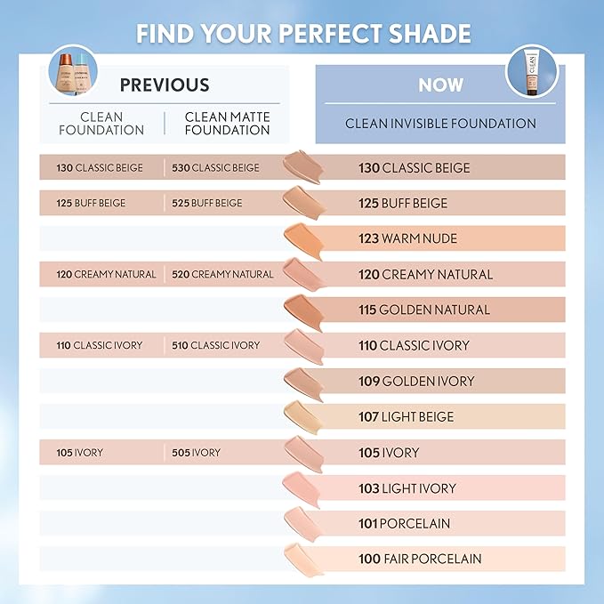 COVERGIRL Clean Invisible Foundation Makeup, Dewy & Glowy Natural Finish, Buildable Coverage, Skin-Like Smooth Look, Vegan, Light Ivory, 1oz