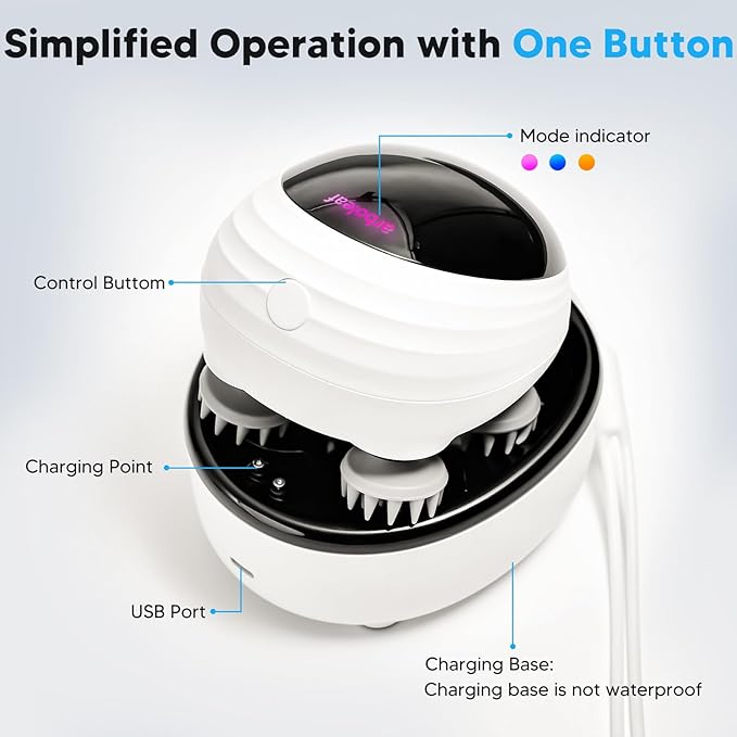- Customizable Speed Modes & Versatile Use: Adjust your hair massager scalp experience with three speed settings: slow, fast, or alternating. Simple one-button operation allows you to switch modes effortlessly or power the device on/off. An additional safety feature automatically shuts the device off after 10 minutes. Beyond just a scalp massager electric, this head massager scalp also offers relaxation for your neck, back, and more.
