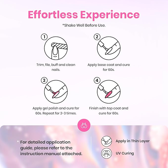 - 【Ideal Gifts】: Beetles uv gel nail polish pastel colors set has low odor and quick dry.You can choose glitter gel nail polish, solid color gel nail polish and butterfly or flower nail charm to match your any outfit style at any time. It is suitable for any daily leisure and friend gathering such as photography, parties and other activities.It is also a great gift for mothers, sisters and friends on various festivals such as birthday, Christmas, Valentine's Day, Mother's Day and anniversary.