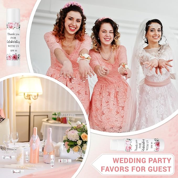 - Wide Range of Uses: these wedding sunscreen lip balms meet the needs of different people, ideal for wedding gift filling, bridesmaid gifts, baby showers, birthday parties, family gatherings, Christmas gifts, gift baskets and other events to express gratitude; You can also take it to school, work, outdoor parties, etc. It also makes a gift for children, spouse, mother
