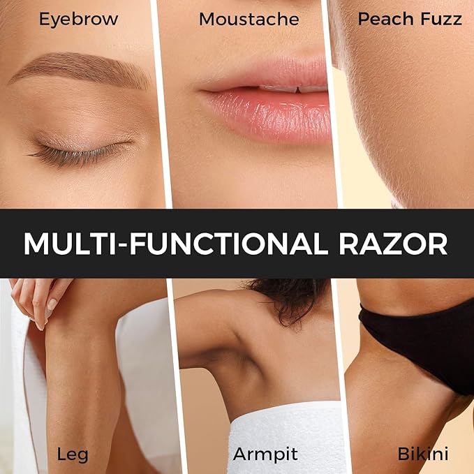 - MULTI-FUNCTIONAL RAZOR: Beyond perfecting eyebrows, you can use this face razor on the upper lip, cheeks as well as the body, providing a multipurpose solution for all your hair removal needs. There are two kinds of blades included, micro blades and wide-exfoliating blades. Both for beginners and pros.