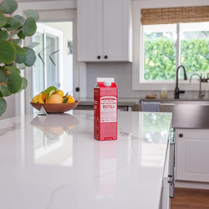 Dr. Bronner's Magic Soap-Pure-Castile Liquid Soap Refill (Rose 32 ounce, 2-Pack)-Regenerative Organic Certified Oils, For Body, Hair, Laundry, Pets & Dishes, Concentrated, Vegan, Non-GMO