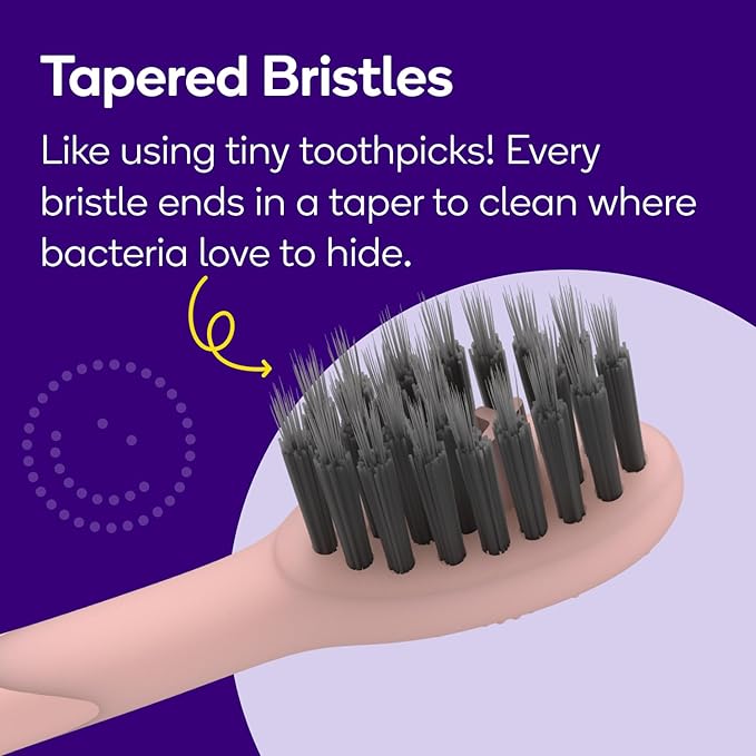 - TAPERED & MULTI-LENGTH BRISTLES: Like using tiny toothpicks! Every bristle ends in a taper to clean where bacteria love to hide. Different lengths get around grooves, under gums, and into tight spaces while polishing teeth pearly white!