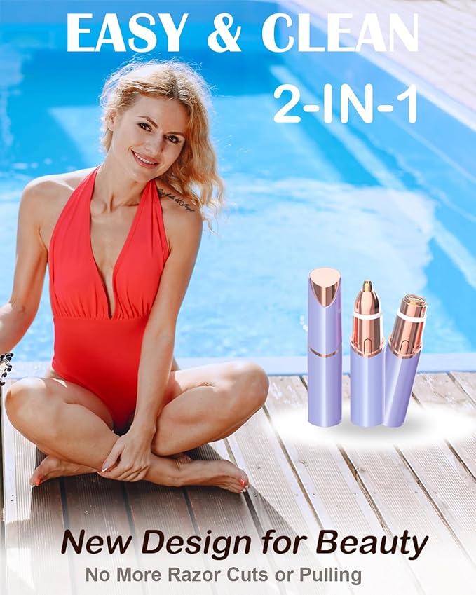 - [2-IN-1 Facial Trimmer] Including one facial trimming head for face, lips, chin, peach fuzz, arms, legs, bikini area, body. The other is eyebrow trimming head for eyebrow, nose hair, ear hair. Easy to replace the blade head, get one for all