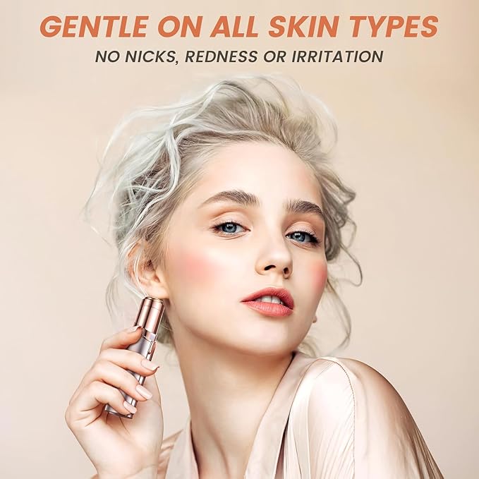 - Simple and Portable:Facial epilator's horizontal cutting head with dual rotating blades expands the razor's contact area. , Quickly trim, unwanted hair on cheeks, chin, upper lip and arms.