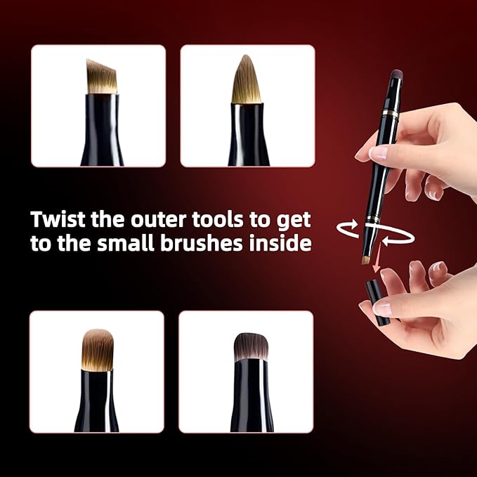 Unaone 4 in 1 Makeup Brush - Travel Lip Brush Eyebrow Brush Eyeshadow Brush Concealer Brush, Portable Multi-function Makeup Brushes
