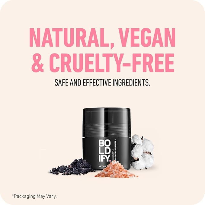 - CLEANER AND MORE AFFORDABLE: BOLDIFY's formula surpasses competitors with its simplicity and affordability. Our cruelty-free Hair Building Fibers are produced in an ISO 22716 certified facility, ensuring high quality at a better price, without keratin or artificial preservatives.