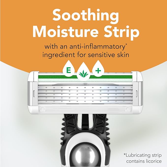 - SENSITIVE SKIN: The lubricating strip enriched with aloe vera, vitamin E and licorice is clinically proven for sensitive skin.