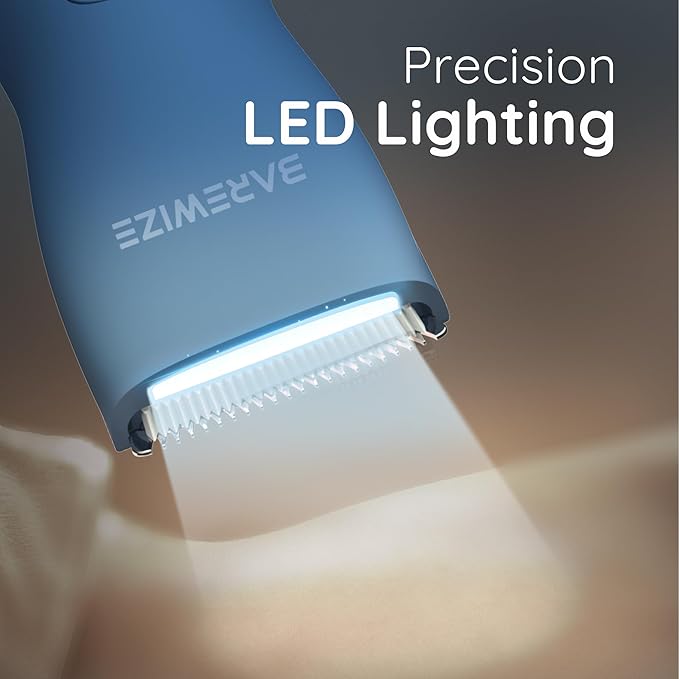 Body Hair & Pubic Hair Trimmer for Men & Women, Painless Electric Body & Bikini Shaver | Waterproof, Type-C Rechargeable, LED Light, Replaceable Blade, Manscape Personal Groomer (Denim Blue)