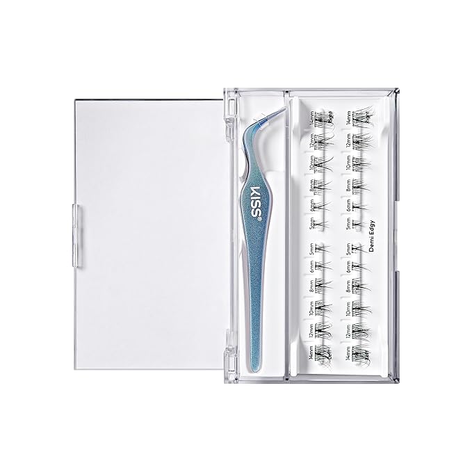 KISS imPRESS Falsies Long Lasting Self Adhesive Eyelashes, ‘Demi Edgy’, 5 Day Extended Wear, 24 Natural Volume Lash Clusters (5,6,8,10,12, & 14mm), Precision Non-Stick Applicator