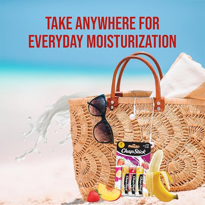 - CHAPSTICK FAN FAVORITES: Make every day sweeter with twelve 3-packs of moisturizing lip balm sticks. Each set includes Peaches & Cream, Strawberries & Cream, and Bananas & Cream.