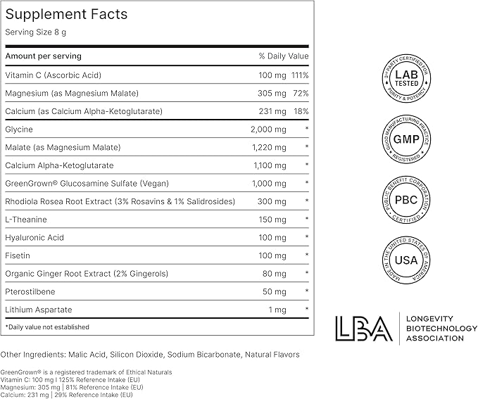 - Primary Supplement Type : Alcium Alpha-Ketoglutarate, Cognition, Longevity, NAD+, Skin