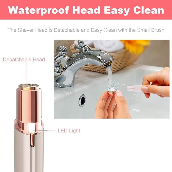 - [DETACHABLE HEADS EASY CLEAN] The detachable head can be cleaned under running water easily with the brush. One button easy to use, designed for beginners, the precise electric shaver can remove tiny hair easily to make sure you won’t miss any peach fuzz hair