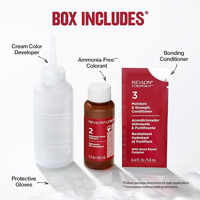 - WORKS ON ALL HAIR: This no-mess, no-drip formula works on all hair types and textures. **Formulated without adding Ammonia Revlon Consumer Products Corporationโs calculation based in part on data reported by Circana, LLC, through its OmniMarket Service of Total US Multi-Outlet for Womenโs Hair Coloring Category for the 52 week period ending 3-24-2024 using Revlonโs custom definitions.