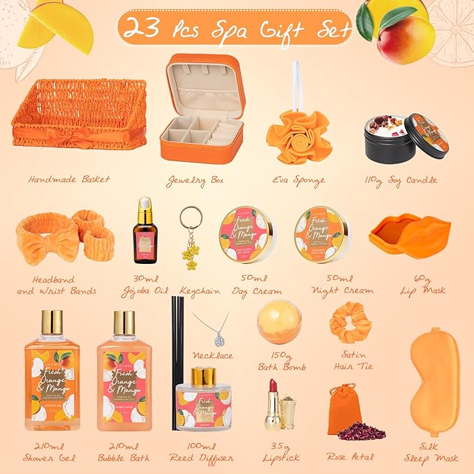- PERFECT HOLIDAY GIFT SET FOR WOMEN: Leave the ordinary behind when you lavish yourself on the soft, feminine fragrance of fresh ORANGE & MANGO, and make you feel tropical like a holiday. The scent smells fresh