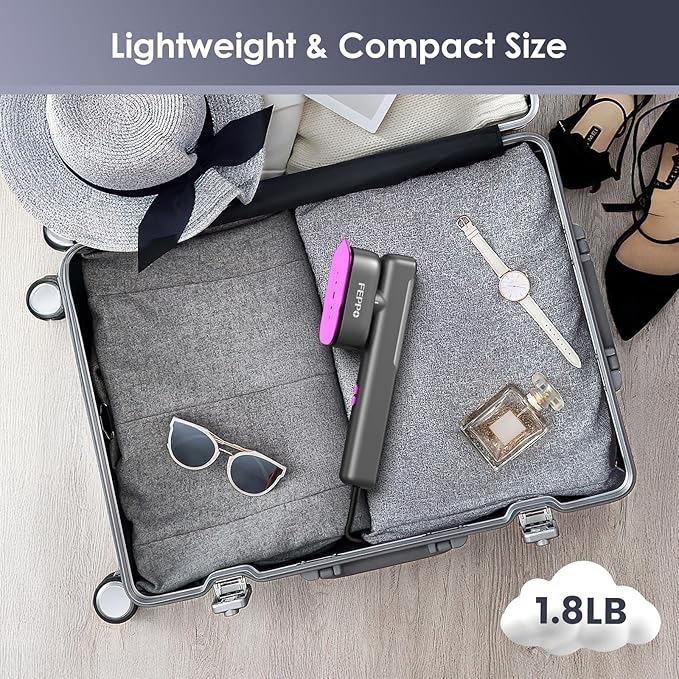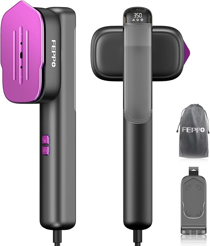 FEPPO Travel Steamer for Clothes, 110-240V Dual Voltage Portable Mini Steamer & Iron 2in1, 1100W Powerful Garment Steamer, Fast Heat Up, Travel Size, HD Display, for Home & Global & Europe Travel