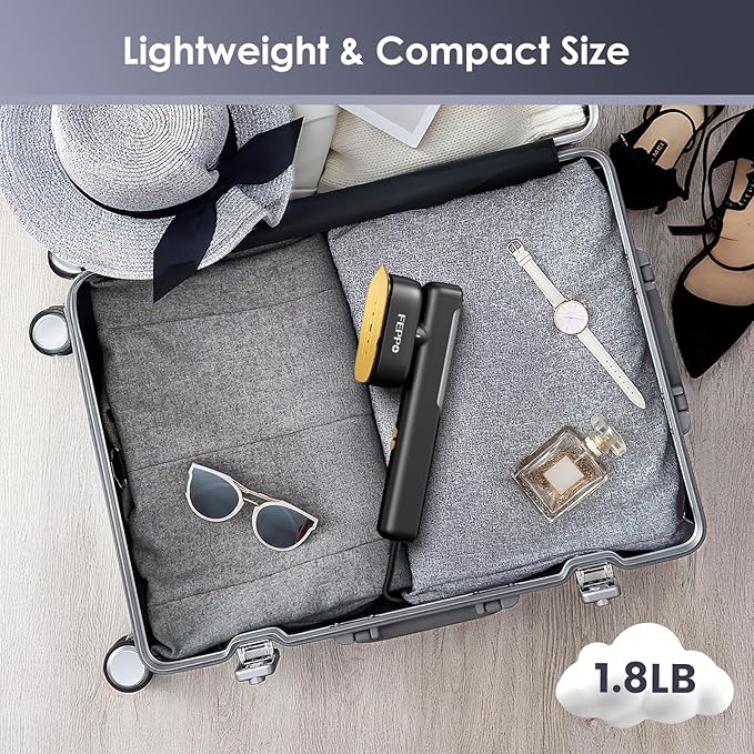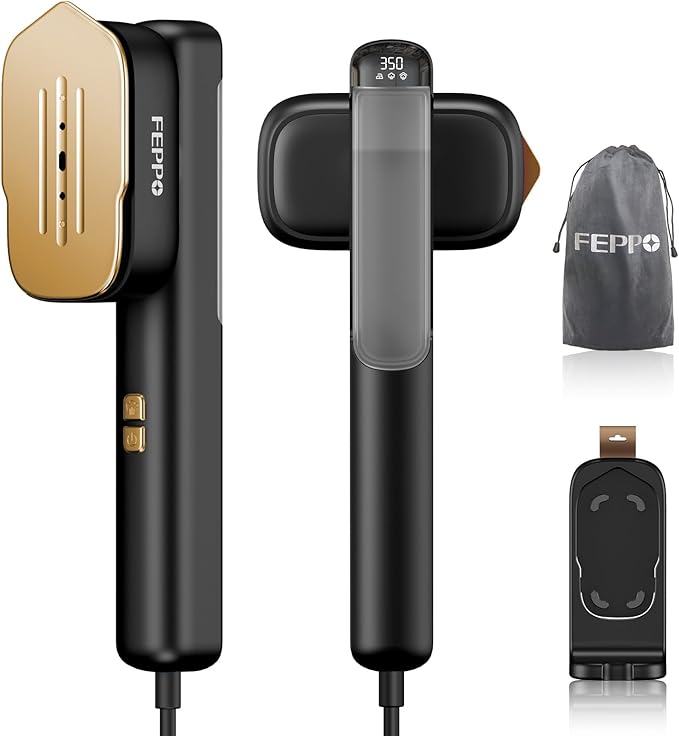 FEPPO Travel Steamer for Clothes, 110-240V Dual Voltage Portable Mini Steamer & Iron 2in1, 1100W Powerful Garment Steamer, Fast Heat Up, Travel Size, HD Display, for Home & Global & Europe Travel