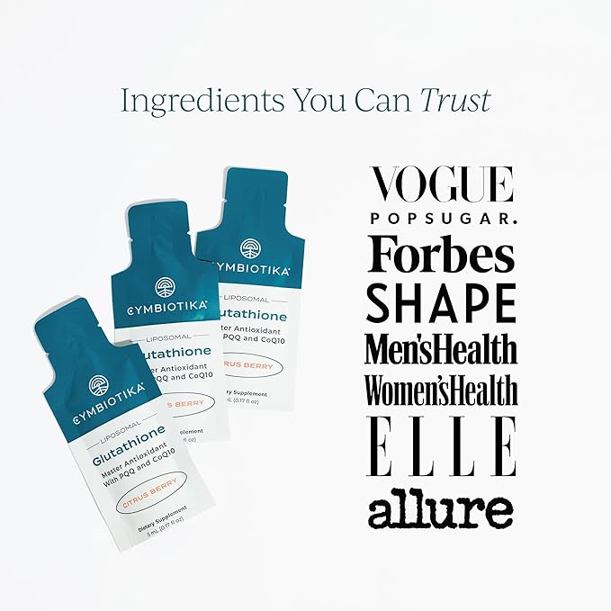 - Model Name : CYMBIOTIKA Glutathione with PQQ & CoQ10, USA MADE, Liposomal Delivery, Glutathione Supplement, for Energy, Gut Health & Immune Support, Natural Antioxidant for Men & Women, Citrus Berry, 25 Pack, 2pck CYMBIOTIKA Glutathione with PQQ & CoQ10, USA MADE, Liposomal Delivery, Glutathione Supplement, for Energy, Gut Health & Immune S… See more