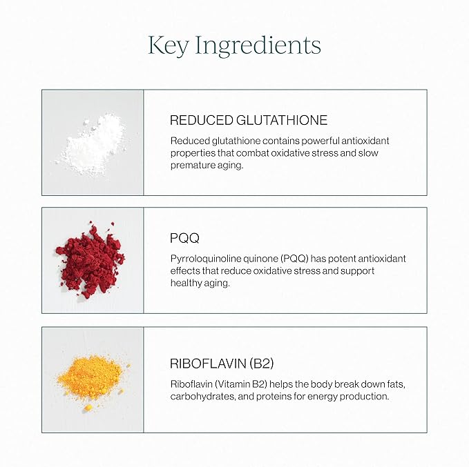 - PACKED WITH ANTIOXIDANTS: Our liquid glutathione contains reduced glutathione and pyrroloquinoline quinone (PQQ), both of which have powerful antioxidant properties that can reduce oxidative stress and support healthy aging.