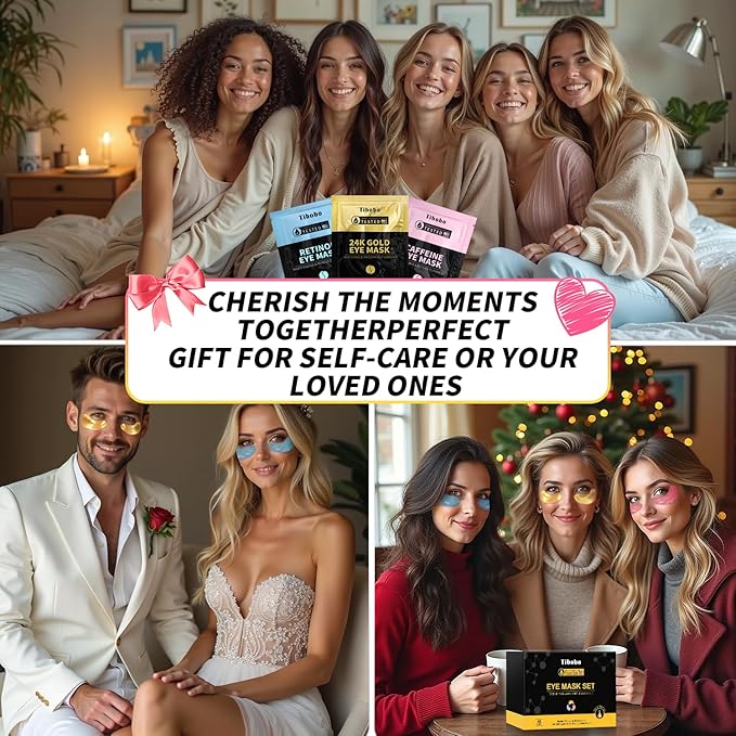- Refreshing and Soothing Eye Relaxation Gift for Women & Men: This set includes 4 pairs of 24K Gold Eye Masks, 4 pairs of Retinol Eye Patches, and 4 pairs of Caffeine Eye Masks.Perfect as a easter basket stuffers, Christmas gift, stocking stuffer, Valentine's Day surprise, birthday present, or bachelorette party favor! If you're not 100% satisfied, let us know, and we'll make it right!