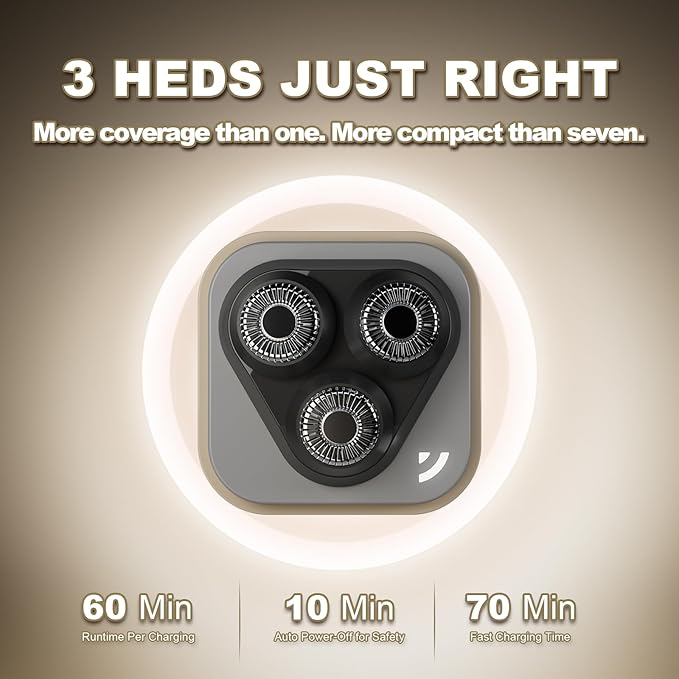 - 【Gentle & Efficient 3-Blade Design】3 floating blades ensure a smooth, gentle shave on face, neck, arms, and legs. A great facial hair remover for women, more efficient than single-head and more portable than 7-head.
