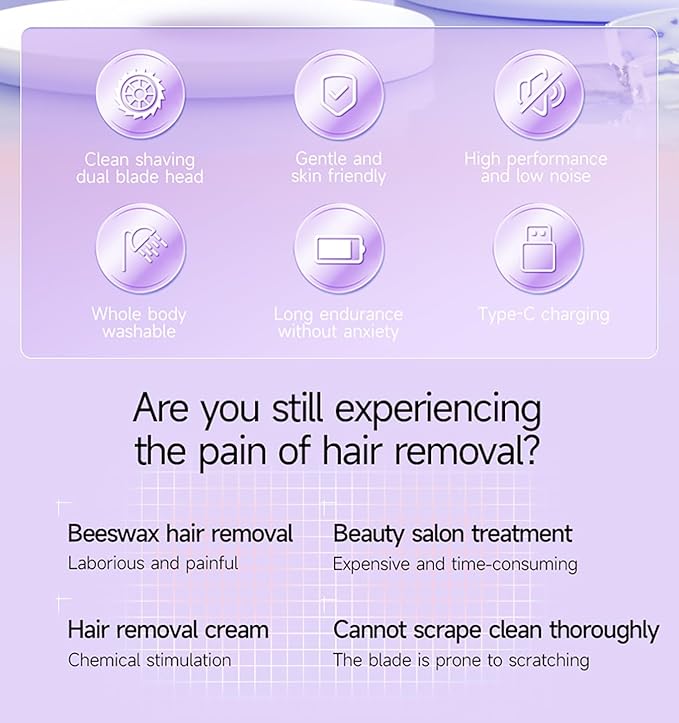 - ✨ Easy and efficient hair removal: Use our advanced aerospace grade hypoallergenic ceramic blades to glide over the skin like feathers. Enjoy a silky aftertaste without any excitement! Say goodbye to razor burns and inward growing hair - painless and smooth sailing!
