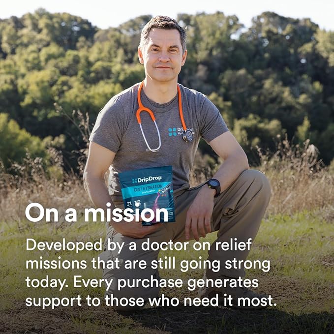 - TRUSTED BRAND WITH A MISSION: Created by a doctor, DripDrop is a groundbreaking innovation that earned a Mayo Clinic Humanitarian Award. As a Public Benefit Company, every purchase supports our mission to defeat dehydration with global donations of our product.