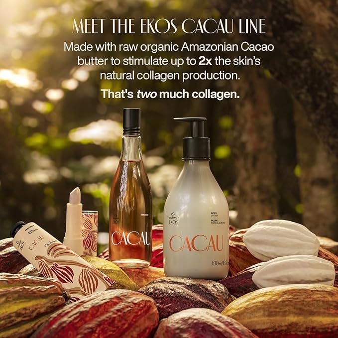 - Deeply Hydrated, Healthier Lips โ Powered by Amazonian Cacau Experience long-lasting hydration and restored softness with Natura Ekos Cacau Lip Balm. Infused with raw, organic Amazonian Cacau butter, this balm stimulates up to twice the collagen production, helping to replenish dry, damaged lips while reinforcing your natural lip barrier.