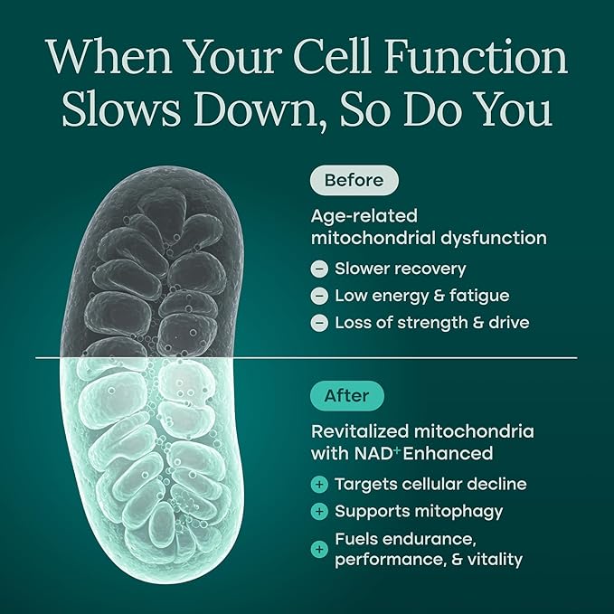 - [Promotes Energy and Endurance] - NAD (Nicotinamide adenine dinucleotide), CoQ10, and Urolithin A work synergistically to support natural energy production and stamina without relying on stimulants.