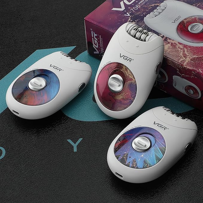 • Complete Kit with Useful Accessories:The VGR 706 comes with everything you need for a clean and efficient hair removal routine: an epilator, protection cap, cleaning brush, and a USB charging cable. The included cleaning brush removes hair residue easily, while the detachable head design makes cleaning a breeze